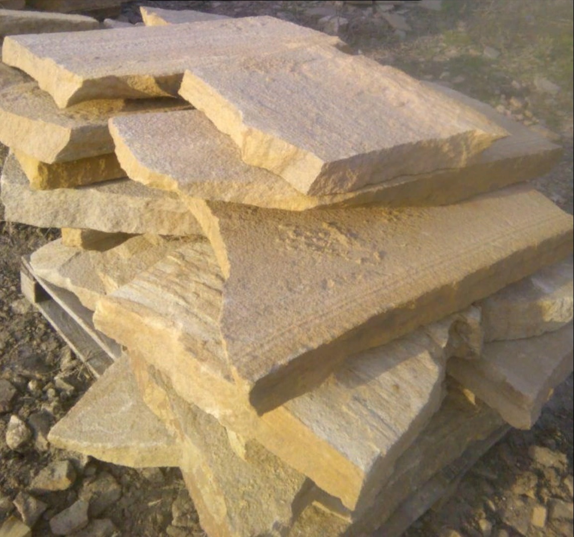 • Kamenclub.ru: Форматный камень (плаха) пошаговая дорожка от 70-150 см (4 -12 см)  купить в Московской области плитняк  форматный плаха желтый песчаник 9 000 руб/т   фото КАМЕНЬ КЛУБ