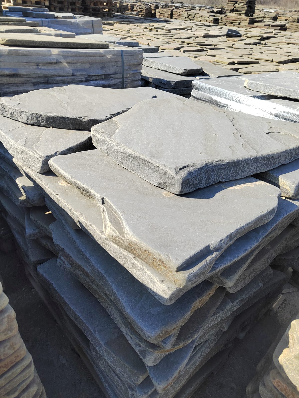 • Kamenclub.ru: Песчаник пластушка галтованная светло-серая (3,0 см)  купить в Московской области песчаник светло-серый, серый ландшафтный камень рваный колотый 21000 руб/м3   фото КАМЕНЬ КЛУБ