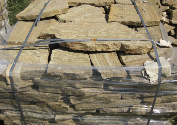 Kamenclub.ru: песчаник пластушка желтый с рисунком (3 см) купить в Московской области - заказать природный камень по низким ценам оптом с доставкой от производителя - kamenclub.ru