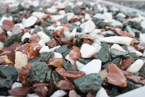 Kamenclub.ru: мраморная крошка (щебень крошка микс: белый-зеленый-розовый) фр. 10-20 мм. купить в Московской области - заказать природный камень по низким ценам оптом с доставкой от производителя - kamenclub.ru